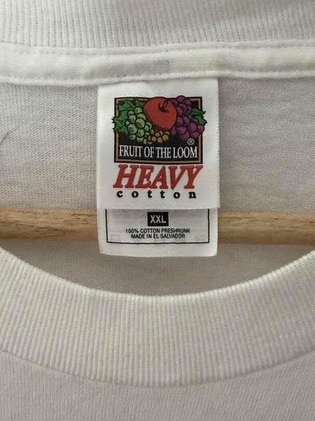 This vintage Too Gangsta For Radio Death Row Records 90s Rap Tee (size XXL) is a unique and original piece of men's vintage clothing. Featuring the iconic Fruit of the Loom brand and a white color scheme, this shirt embodies the style and attitude of 1990s gangsta rap music. Perfect for fans of classic hip-hop and collectors of vintage streetwear, this tee is a must-have addition to any wardrobe.